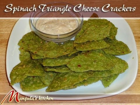Spinach Triangle Cheese Crackers Recipe by Manjula - Cheese Triangle Crackers - View full recipe at http://www.manjulaskitchen.com/2010/07/20/spinach-triangles-cheese-crackers/ Ingredients: 1 cup all purpose flour (maida, plain flour) 1/2 ...